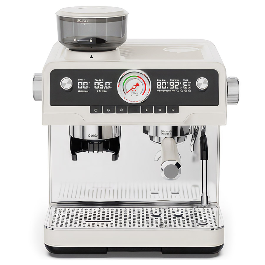 Модель оснащена встроенной кофемолкой и встроенным ручным капучинатором. Корпус выполнен из ABS‑пластика с элементами из нержавеющей стали.