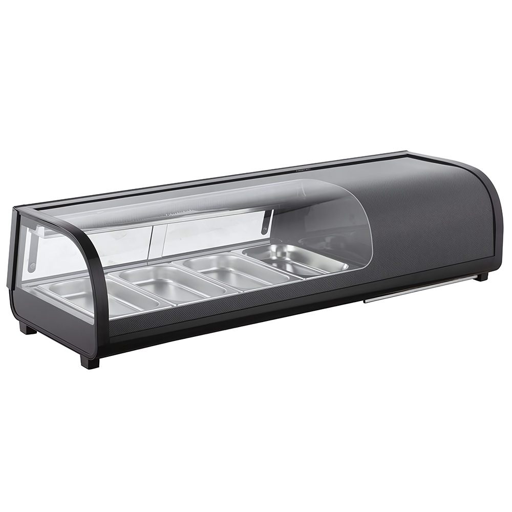 Настольная холодильная витрина Viatto VA-RTS-42 — это современное решение, специально разработанное для предприятий общественного питания, таких как пиццерии, кафе, рестораны и магазины с отделами свежих продуктов. Модель предназначена для экспозиции, охлаждения, кратковременного хранения и продажи салатов, ингредиентов для пиццы, других гастрономических изделий и полуфабрикатов. Благодаря своей функциональности, надежности и стильному дизайну, эта витрина станет не только эффективным инструментом для вашего бизнеса, но и привлекательным элементом интерьера заведения. Яркая внутренняя светодиодная подсветка делает продукцию более заметной, а переднее изогнутое стекло создает эффектный обзор товаров.
