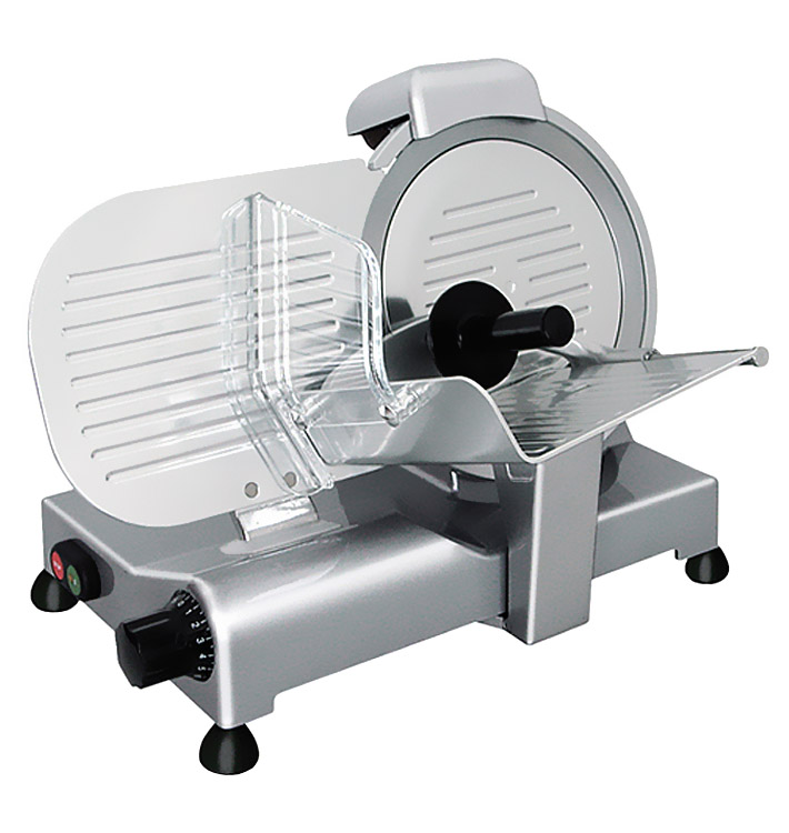 Слайсер оснащен; принудительной вентиляцией мотора, защитным крылом диска. Оборудован фиксированным устройством для заточки ножа.