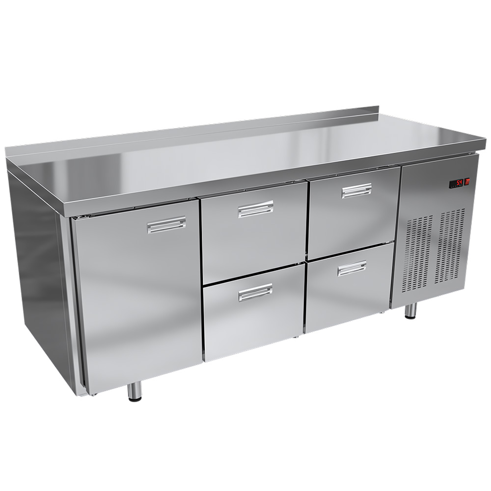 - Дверь с магнитным уплотнителем: обеспечивает герметичное закрытие и предотвращает потерю холодного воздуха, что особенно важно для поддержания стабильной температуры внутри стола.