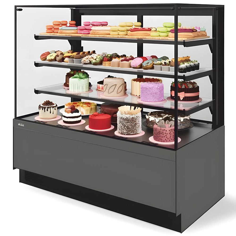 Витрина кондитерская Chilz Vete II kub lux 90 – оборудование из обновленной серии кондитерских витрин VETE KUB. Предназначена для самообслуживания, без переднего стекла. Это идеальное решение для точек общественного питания и магазинов, специализирующихся на продаже кондитерских изделий.