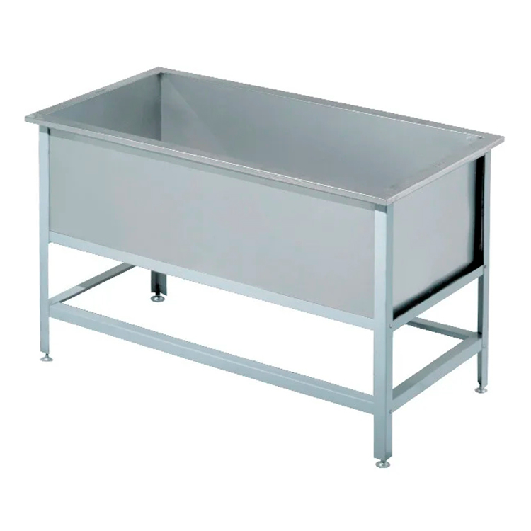 Ванна изготовлена из нержавеющей стали марки AISI 304 толщиной 0.8 мм, каркас выполнен из оцинкованного металла толщиной 1.2 мм, ножки - из нержавеющей стали, опора ножек - из пластика.