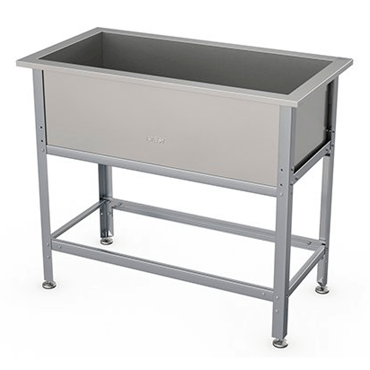 Ванна изготовлена из нержавеющей стали марки AISI 304 толщиной 0.8 мм, каркас выполнен из оцинкованного металла толщиной 1.2 мм, ножки - из нержавеющей стали, опора ножек - из пластика.