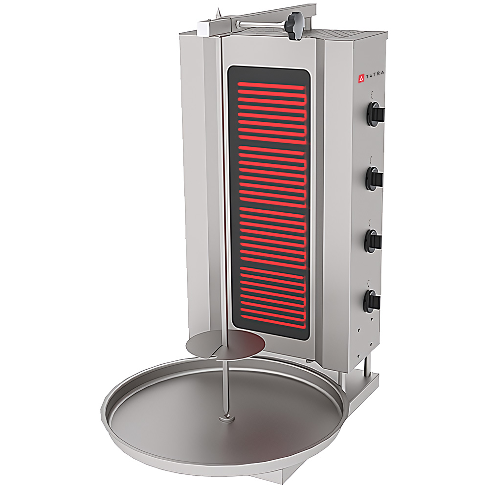 Профессиональный электрический гриль Tatra TDM E 4M используется на кухнях различных заведений общественного питания: от ресторанов до точек быстрого питания, для приготовления мясной части блюда шаурма. Гриль предназначен для обжарки мясных заготовок цилиндрической формы, которые размещаются на вертикальный вертел, обеспечивая равномерное приготовление. Мясо может быть разных видов: курица, свинина или говядина.