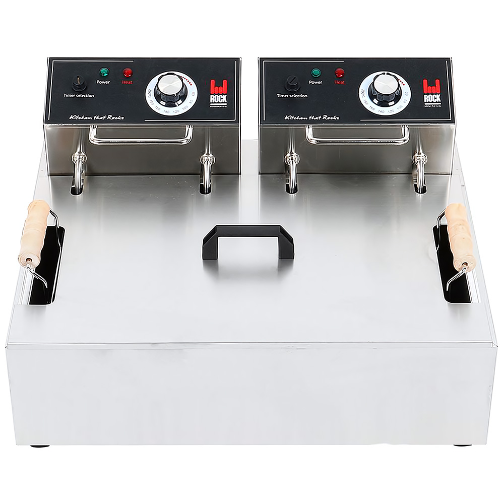 Чебуречница Rock Kitchen RK-MF25-2B используется в заведениях быстрого питания, кафе, кондитерских и столовых для приготовления чебуреков, пирожков, пончиков, мяса, рыбы и овощей.