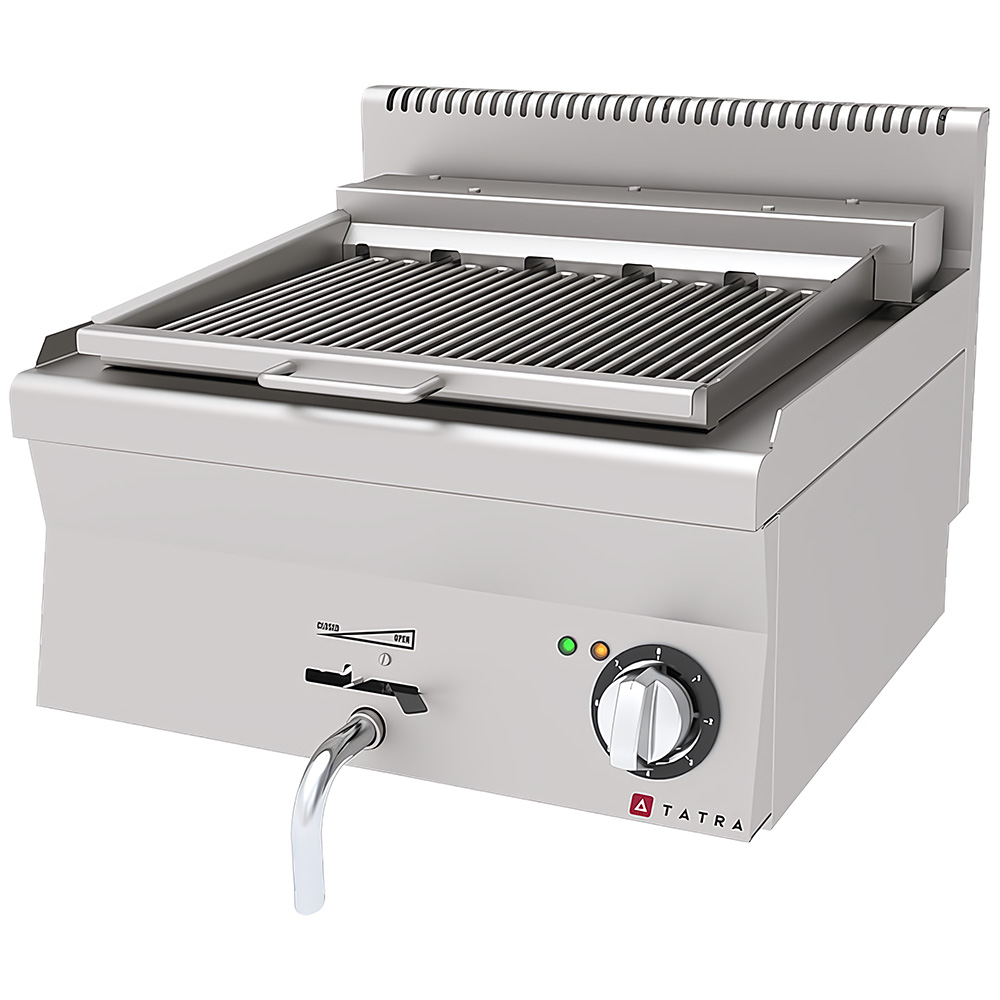 Электрический водяной гриль Tatra TWG 4635 используется для обжаривания рыбы, мяса и овощей. Модель оснащена жарочной решеткой, изготовленной из нержавеющей стали марки AISI 304, что обеспечивает ее прочность и долговечность.
