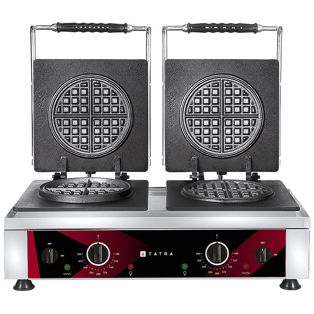 Вафельница TATRA TWI 2 AMERICAN - это профессиональное оборудование для выпечки вафельных изделий на предприятиях общественного питания и в кондитерских. Модель оснащена двумя зонами для выпечки с рабочими поверхностями изготовленными из чугуна..