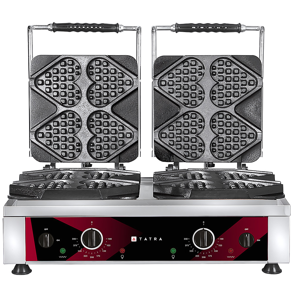 Вафельница TATRA TWI 2 TIAMO - это профессиональное оборудование для выпечки вафельных изделий на предприятиях общественного питания и в кондитерских. Модель оснащена двумя зонами для выпечки с рабочими поверхностями изготовленными из чугуна.