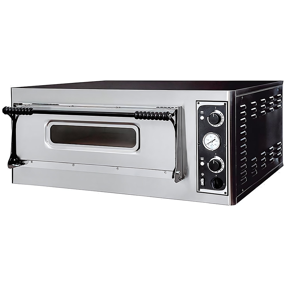 - Вместительность — 1 ярус рассчитан на 6 пицц диаметром 32 см, что позволяет готовить крупные партии за один цикл.