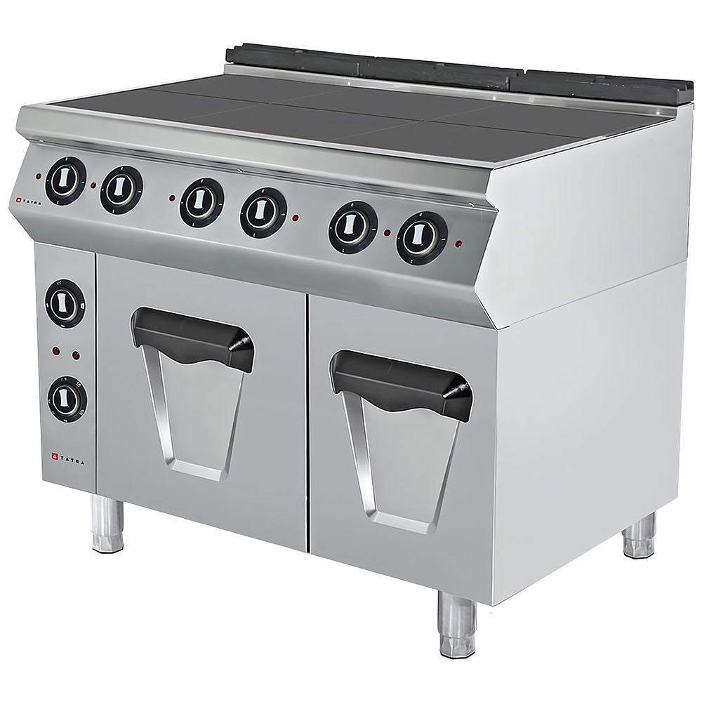 Профессиональная электрическая плита Tatra TER.127O серии 700 — это высокопроизводительное оборудование для предприятий общественного питания и торговли. Модель сочетает мощную варочную поверхность и многофункциональный жарочный шкаф с нейтральной секцией, обеспечивая полный цикл приготовления различных блюд.