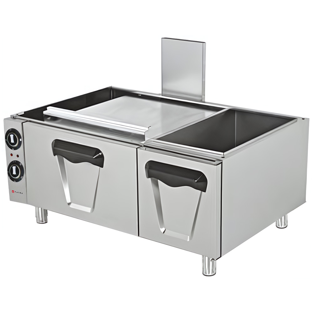 Данная модель рассчитана на установку под настольную шестикомфорочную плиту TER.127. Это обеспечивает компактное размещение оборудования и позволяет эффективно использовать рабочее пространство на кухне.
